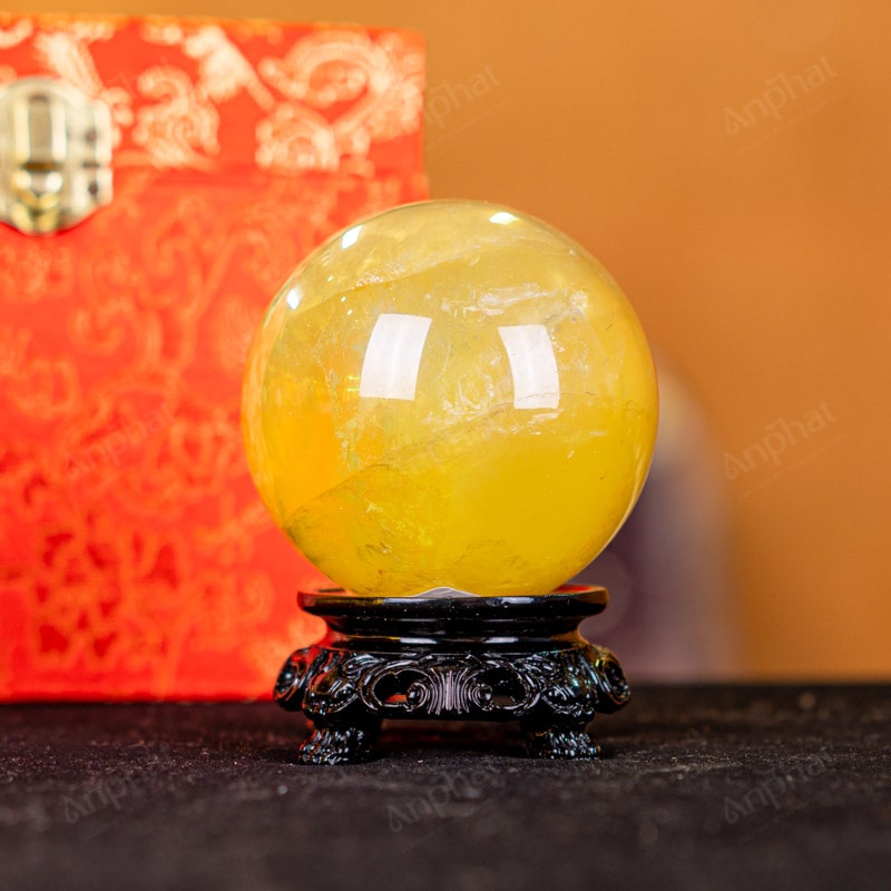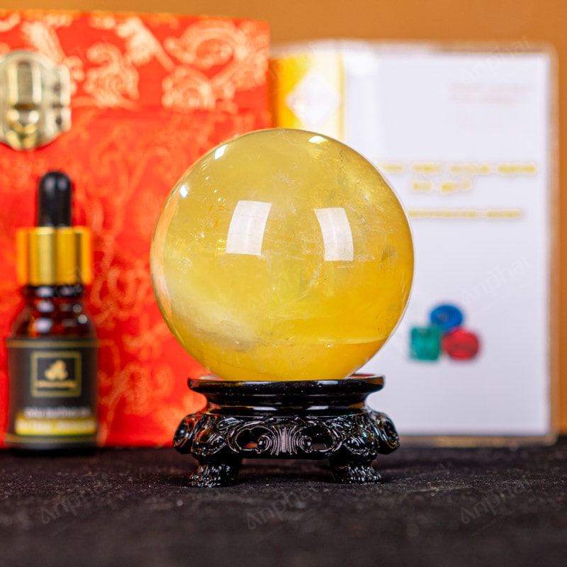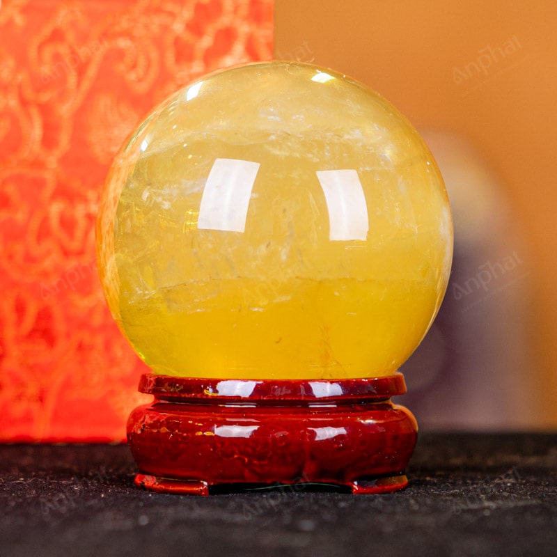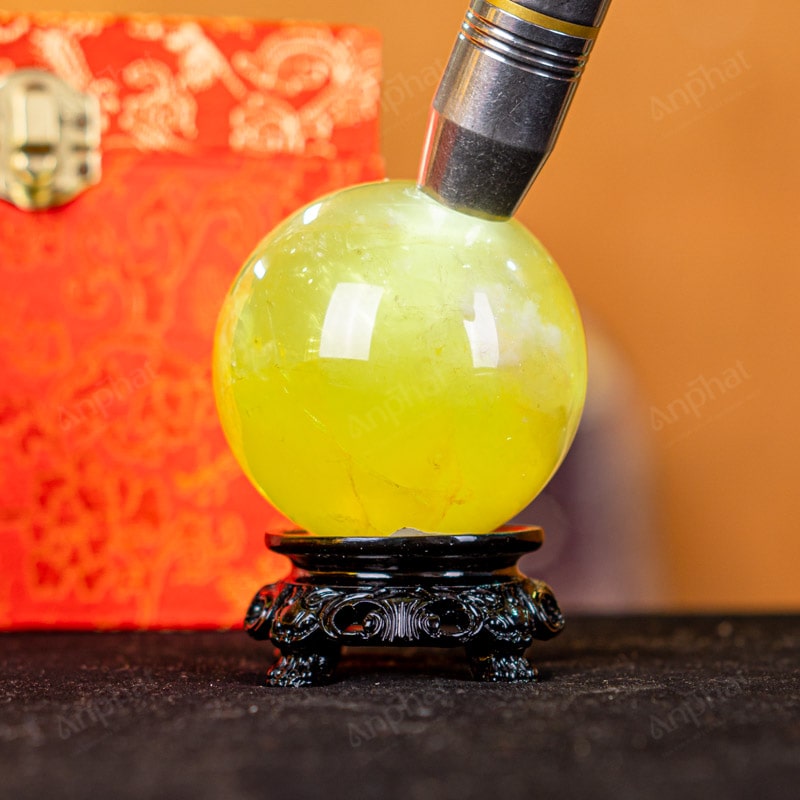 Ảnh cận cảnh quả cầu đá thạch anh vàng