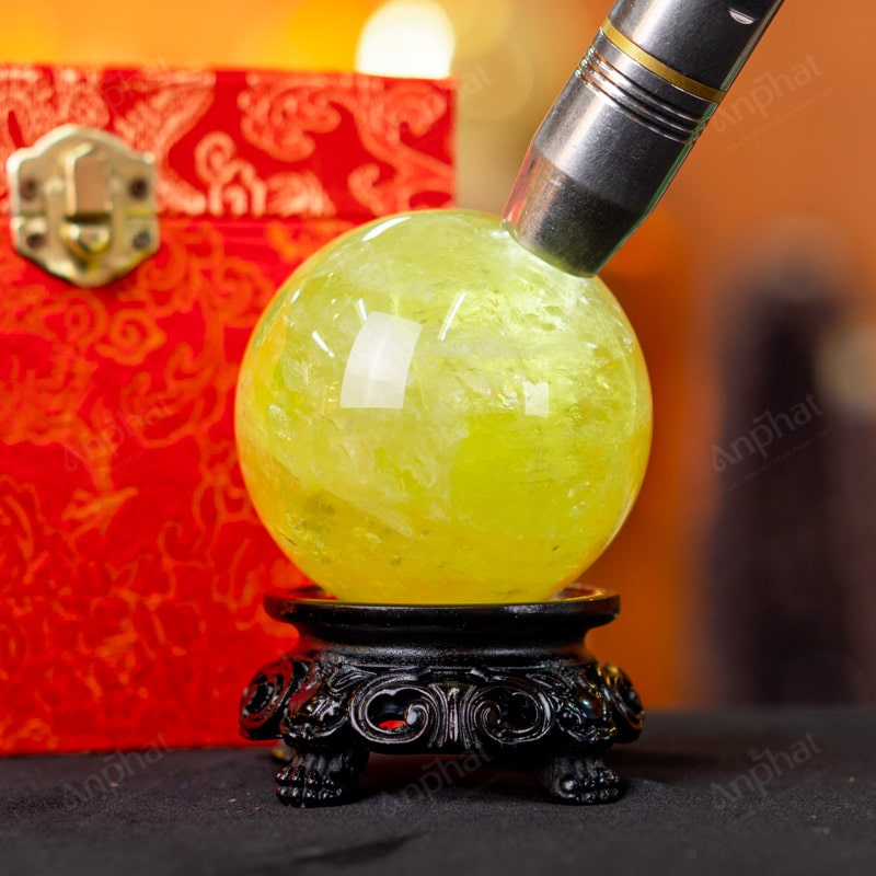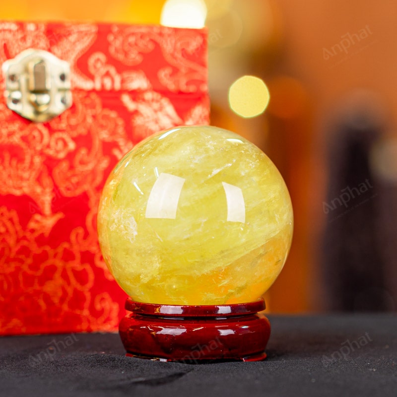 Ảnh cận cảnh quả cầu đá thạch anh vàng