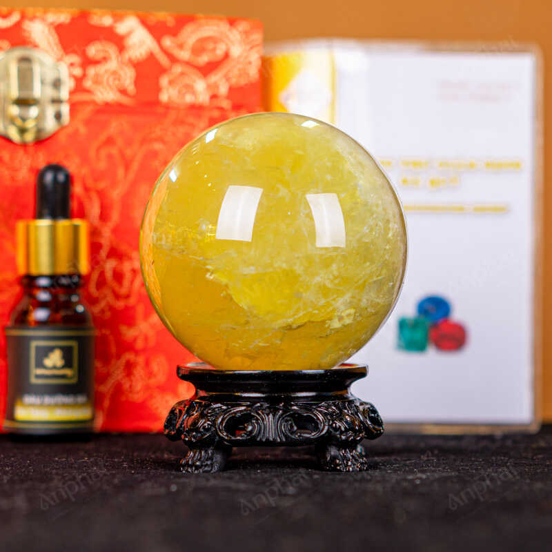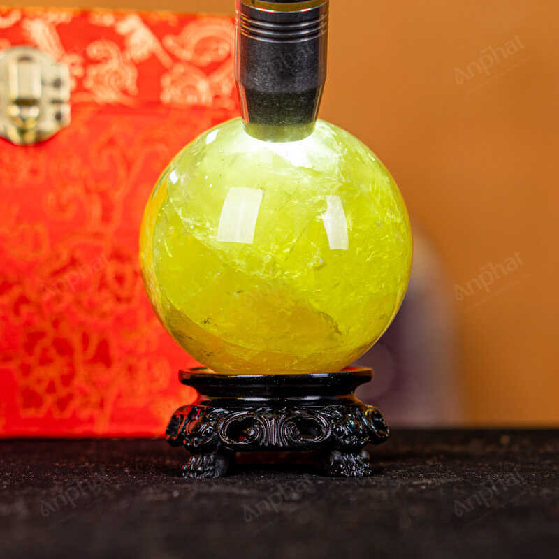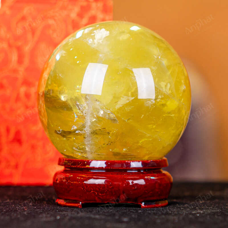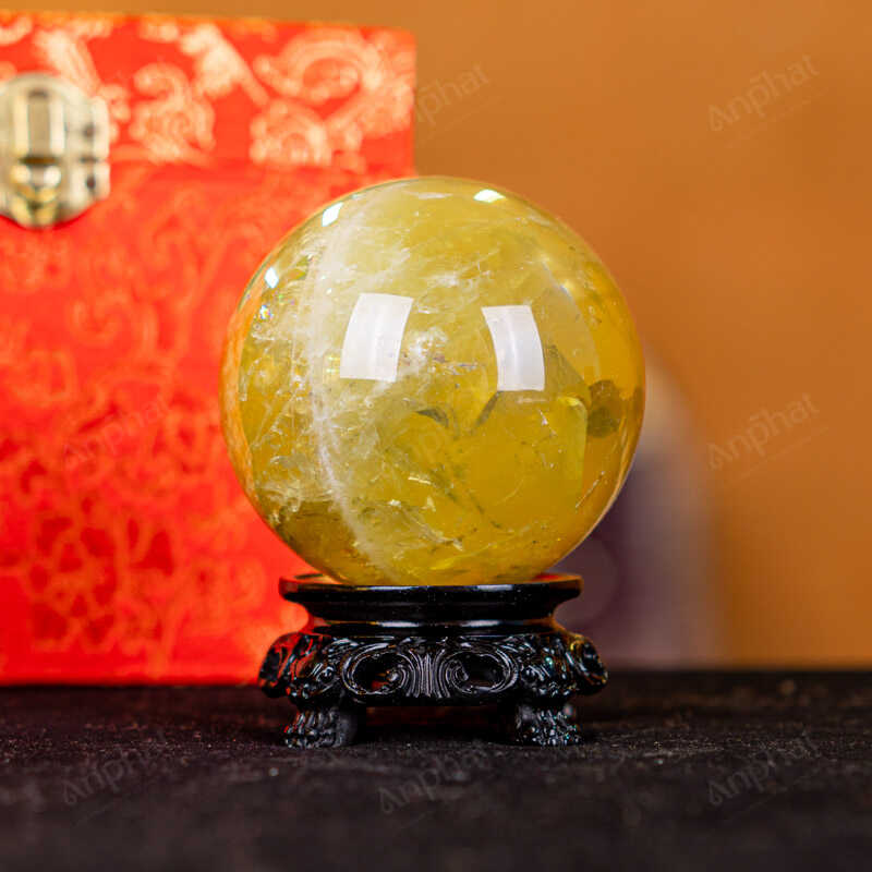 Ảnh cận cảnh quả cầu đá thạch anh vàng