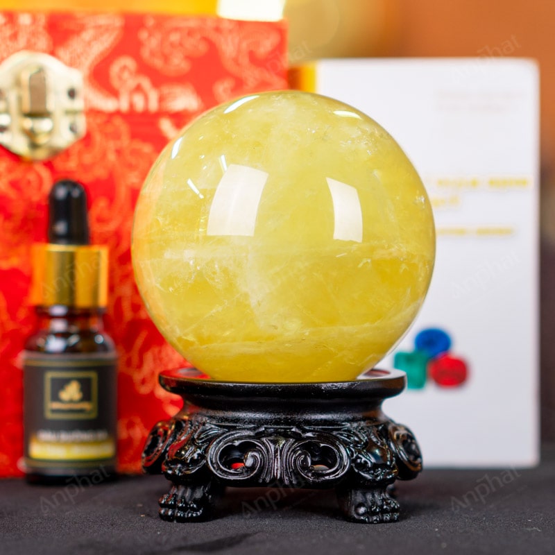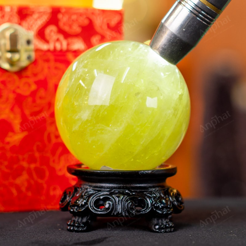 Ảnh cận cảnh quả cầu đá thạch anh vàng