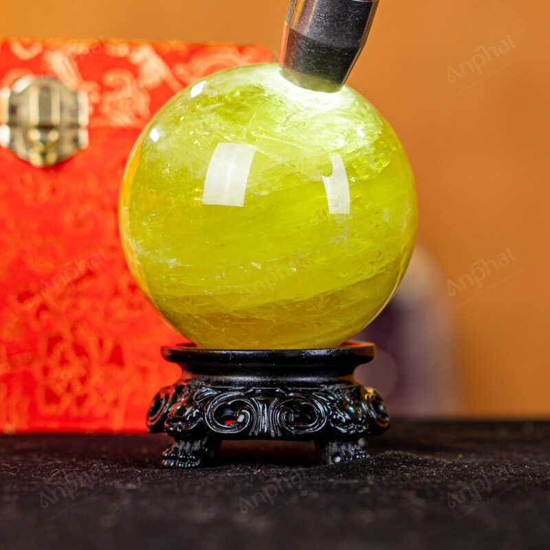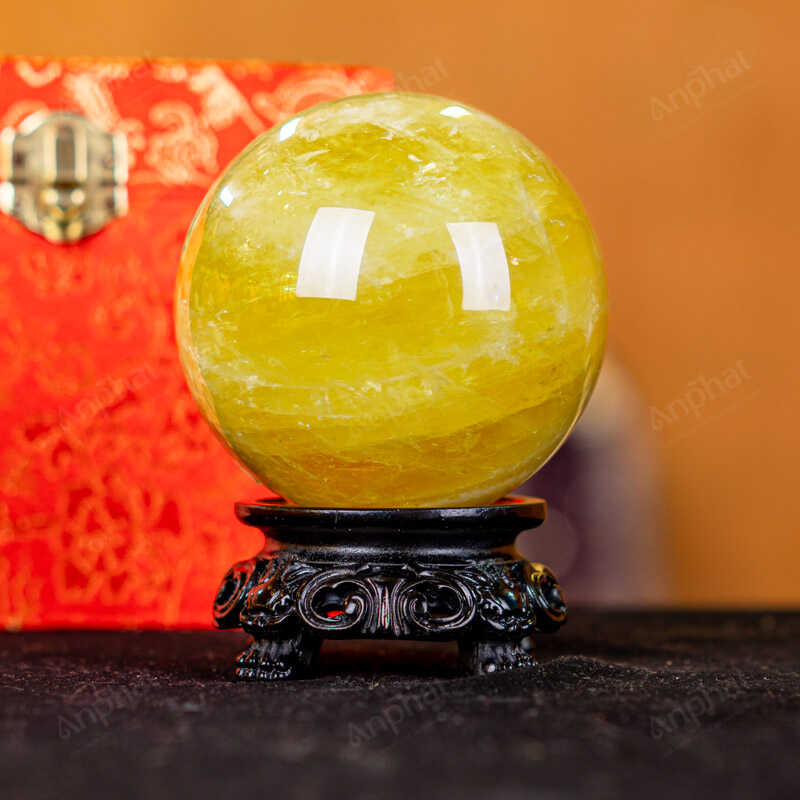 Ảnh cận cảnh quả cầu đá thạch anh vàng