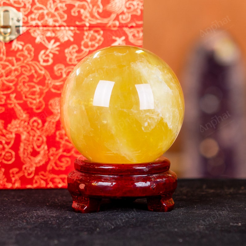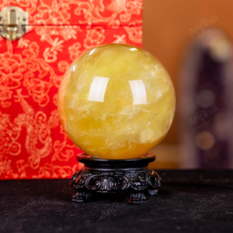 Ảnh cận cảnh quả cầu đá thạch anh vàng