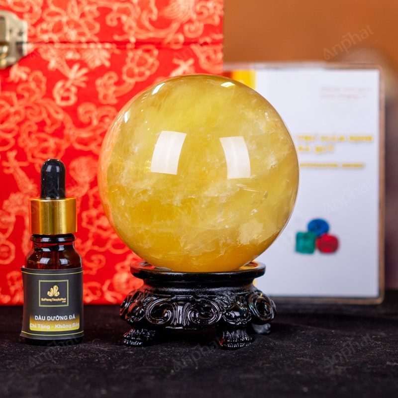 - Trọn bộ sản phẩm bao gồm: quả cầu + 01 đế gỗ + hộp đựng sang trọng + túi giấy sang trọng + dầu dưỡng đá + thiệp + giấy kiểm định chất lượng đá