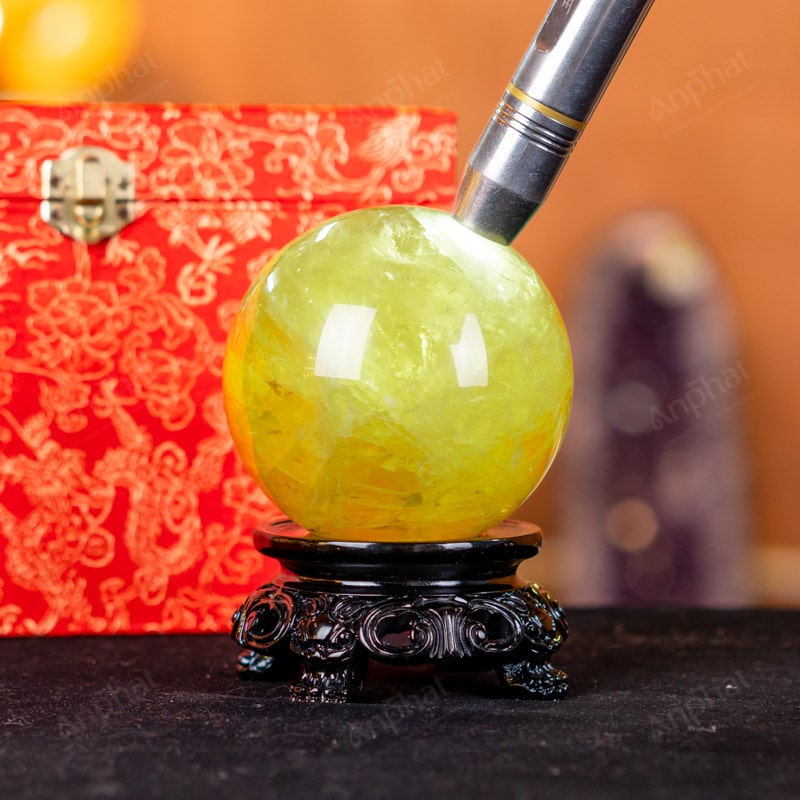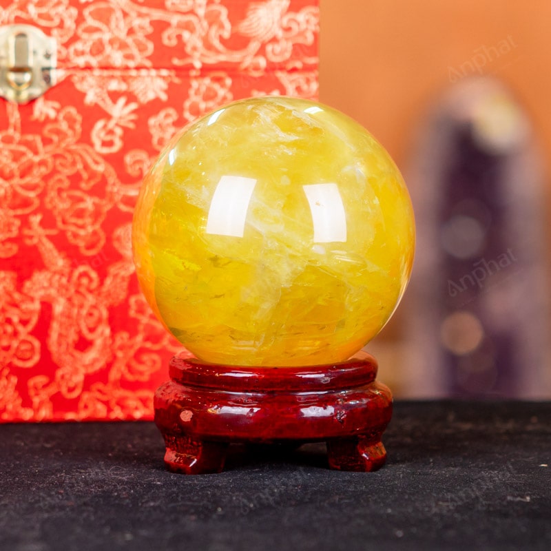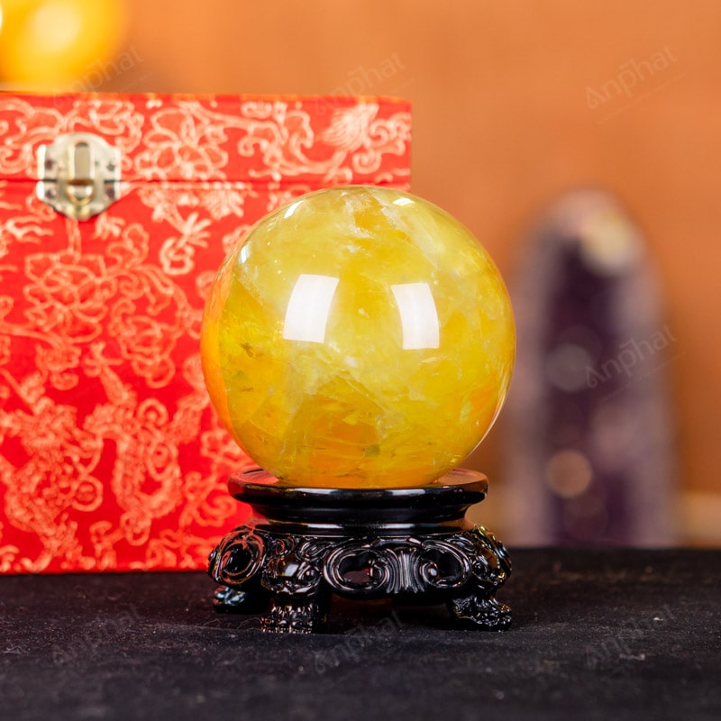 Ảnh cận cảnh quả cầu đá thạch anh vàng