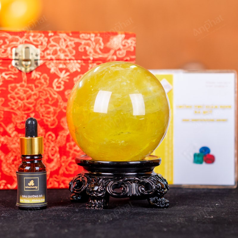 - Trọn bộ sản phẩm bao gồm: quả cầu + 01 đế gỗ + hộp đựng sang trọng + túi giấy sang trọng + dầu dưỡng đá + thiệp + giấy kiểm định chất lượng đá