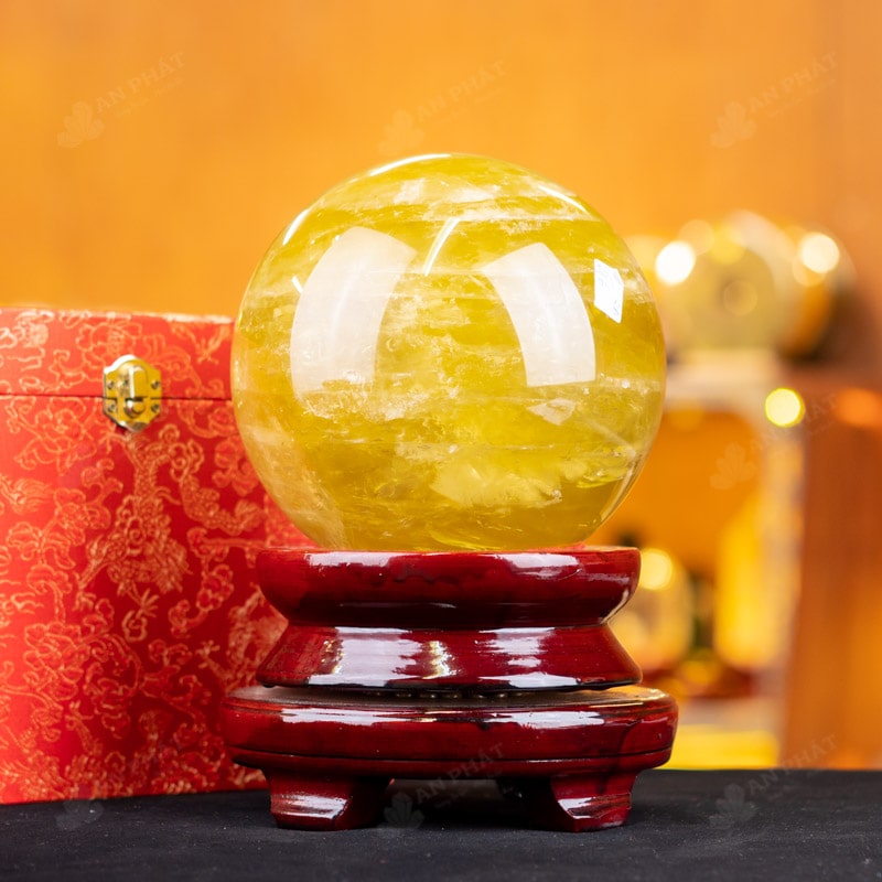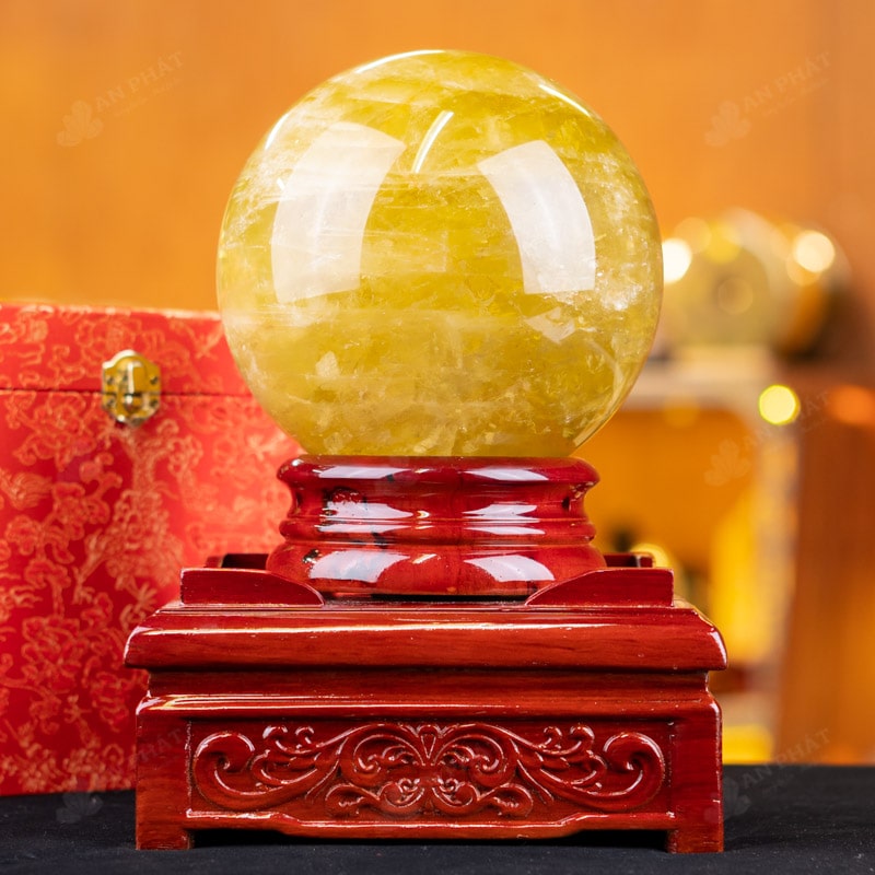 Ảnh cận cảnh quả cầu thạch anh vàng