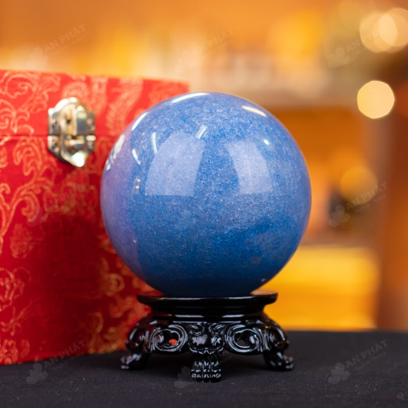 Ảnh cận cảnh quả cầu thạch anh xanh nước biển