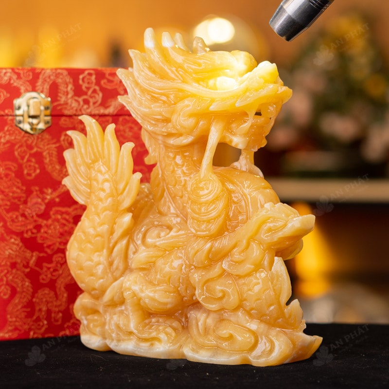 - Trọn bộ sản phẩm bao gồm: Rồng đá + hộp nhung sang trọng + túi giấy đựng sang trọng + dầu dưỡng đá + thiệp + giấy kiểm định chất lượng đá