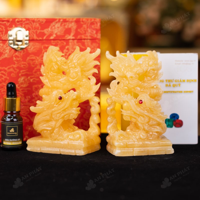 - Trọn bộ sản phẩm bao gồm: Cặp rồng + hộp nhung sang trọng + túi giấy đựng sang trọng + dầu dưỡng đá + thiệp + giấy kiểm định chất lượng đá