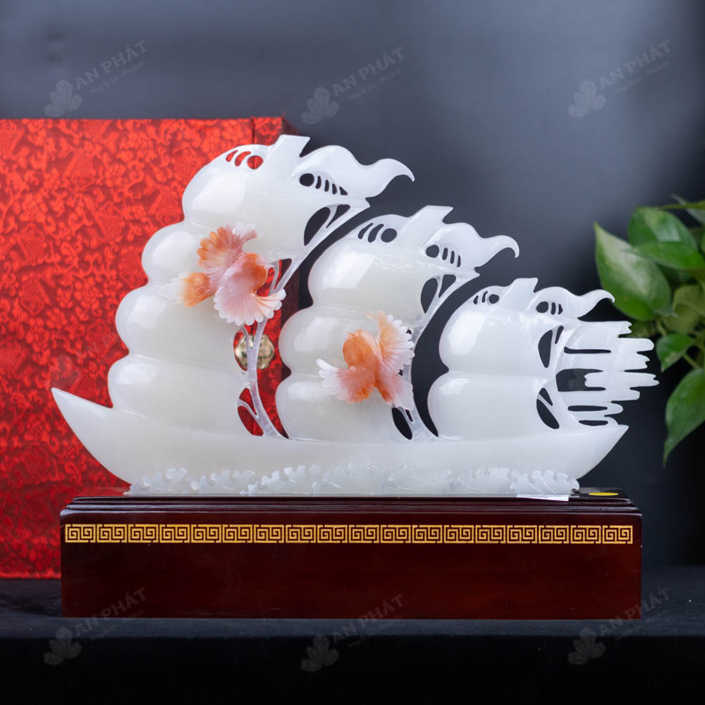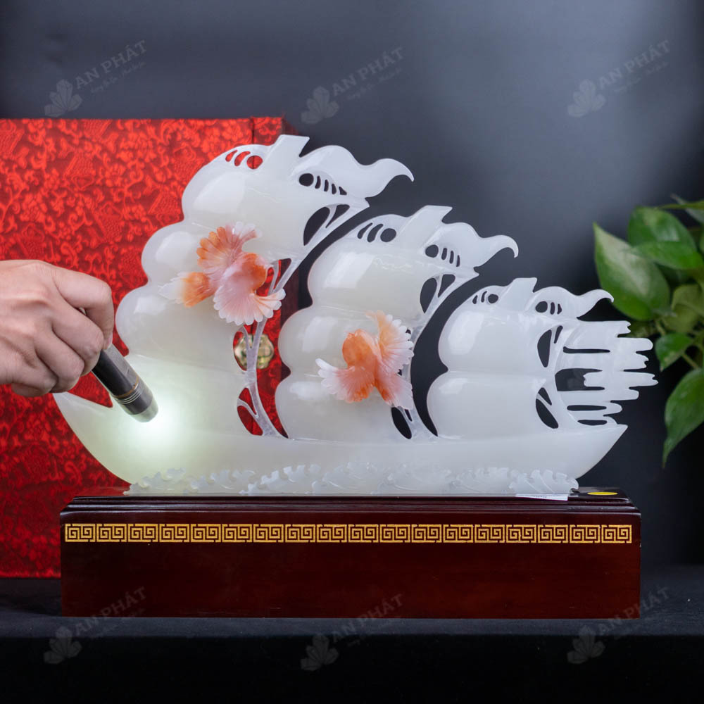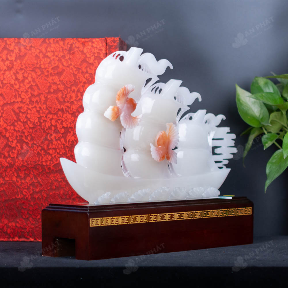 Ảnh cận cảnh tác phẩm thuận buồm xuôi gió ngọc Onyx trắng