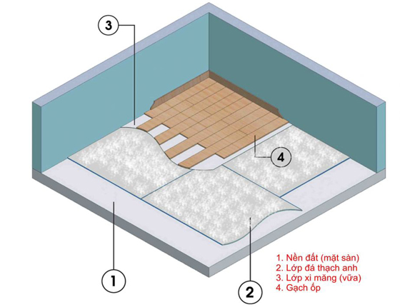 Sơ đồ hương dẫn dải đá xuống nền nhà