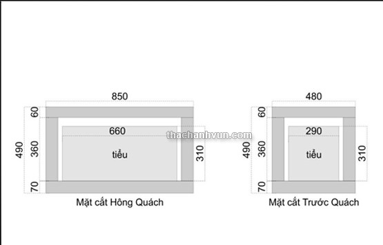 Sơ đồ kích thước của tiều và quách tính theo đơn vị mm.