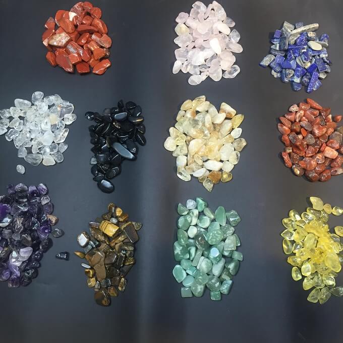 - Thạch anh vụn đánh bóng màu hồng, trắng, vàng, xanh lá cây