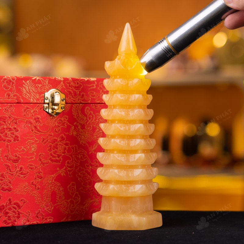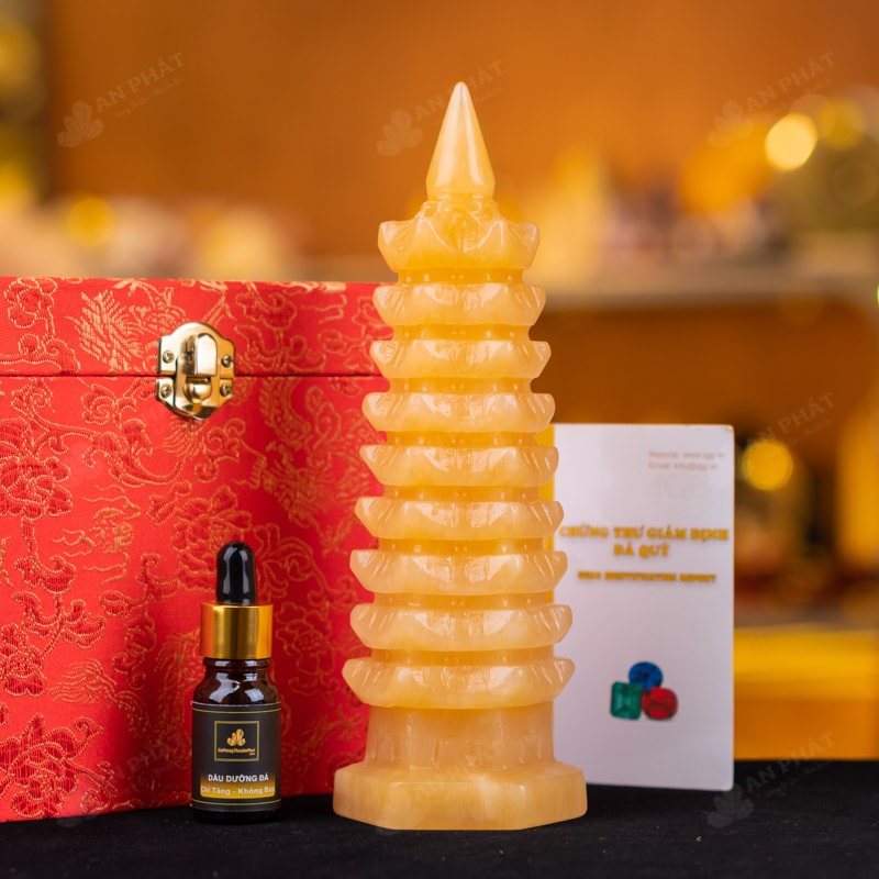 - Trọn bộ sản phẩm bao gồm: Tháp văn xương + hộp đựng sang trọng + túi giấy sang trọng + dầu dưỡng đá + thiệp + giấy kiểm định chất lượng đá
