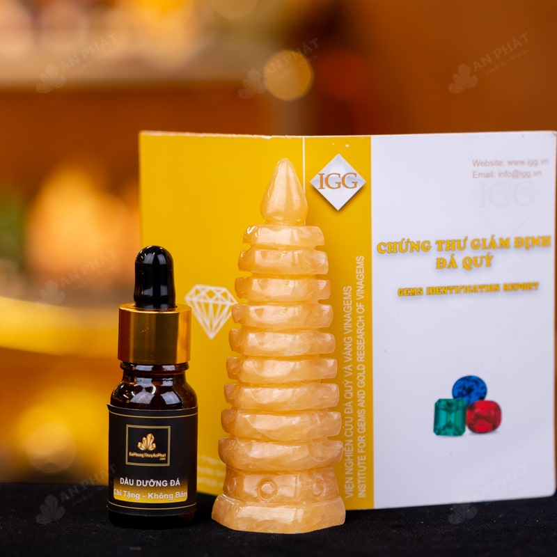 - Trọn bộ sản phẩm bao gồm: Tháp văn xương + túi giấy sang trọng + hộp đựng sang trọng + dầu dưỡng đá + thiệp + giấy kiểm định chất lượng đá