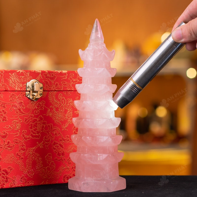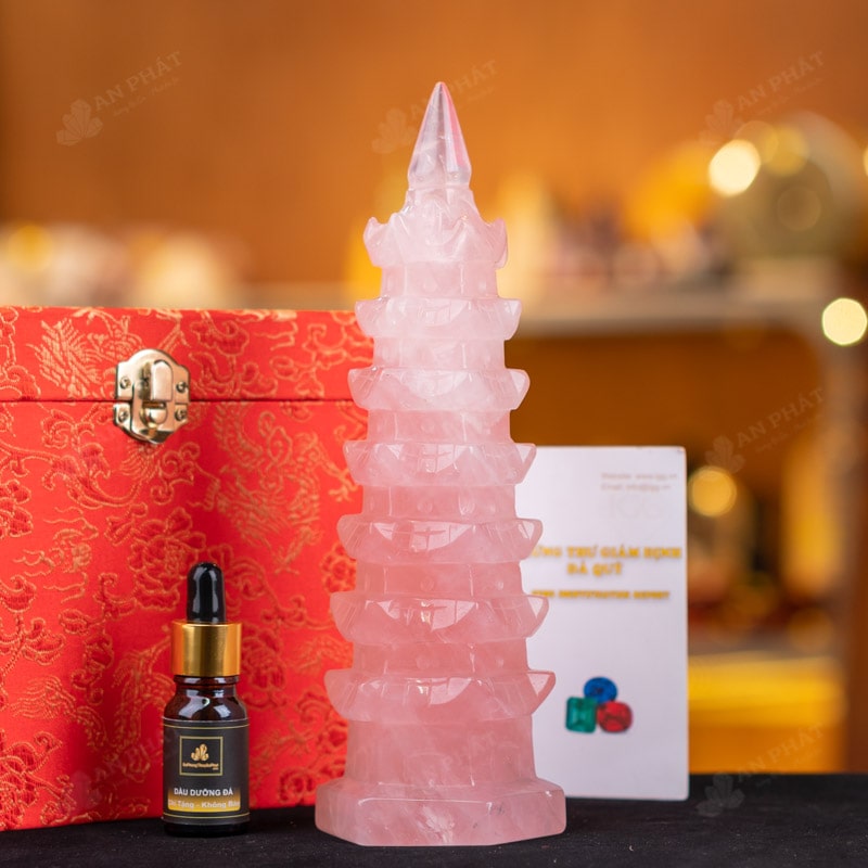 - Trọn bộ sản phẩm bao gồm: Tháp văn xương + hộp đựng sang trọng + túi giấy sang trọng + dầu dưỡng đá + thiệp + giấy kiểm định chất lượng đá