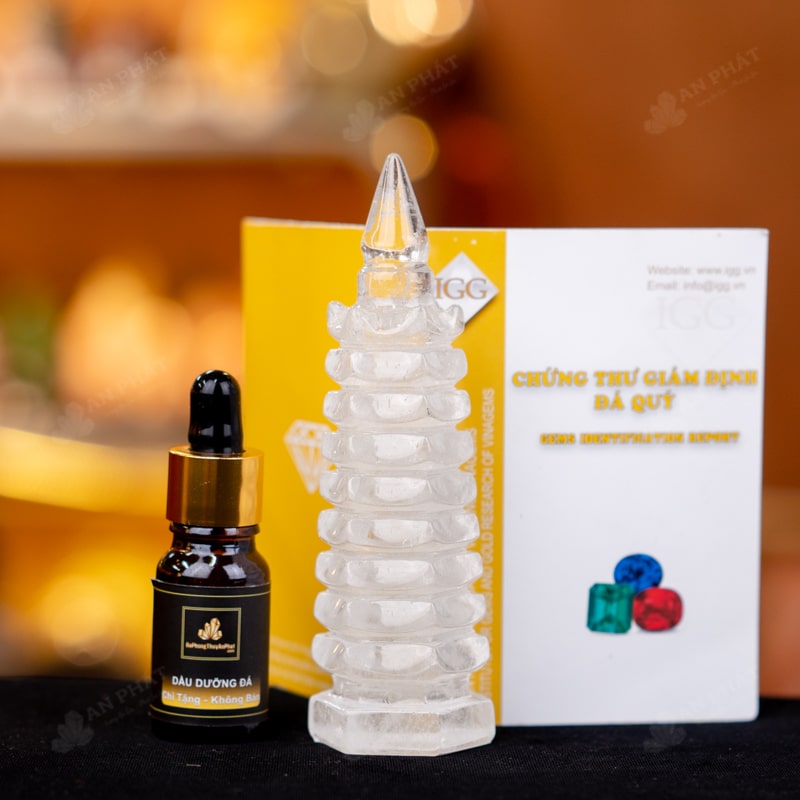 - Trọn bộ sản phẩm bao gồm: Tháp văn xương + túi giấy sang trọng + hộp đựng sang trọng + dầu dưỡng đá + thiệp + giấy kiểm định chất lượng đá