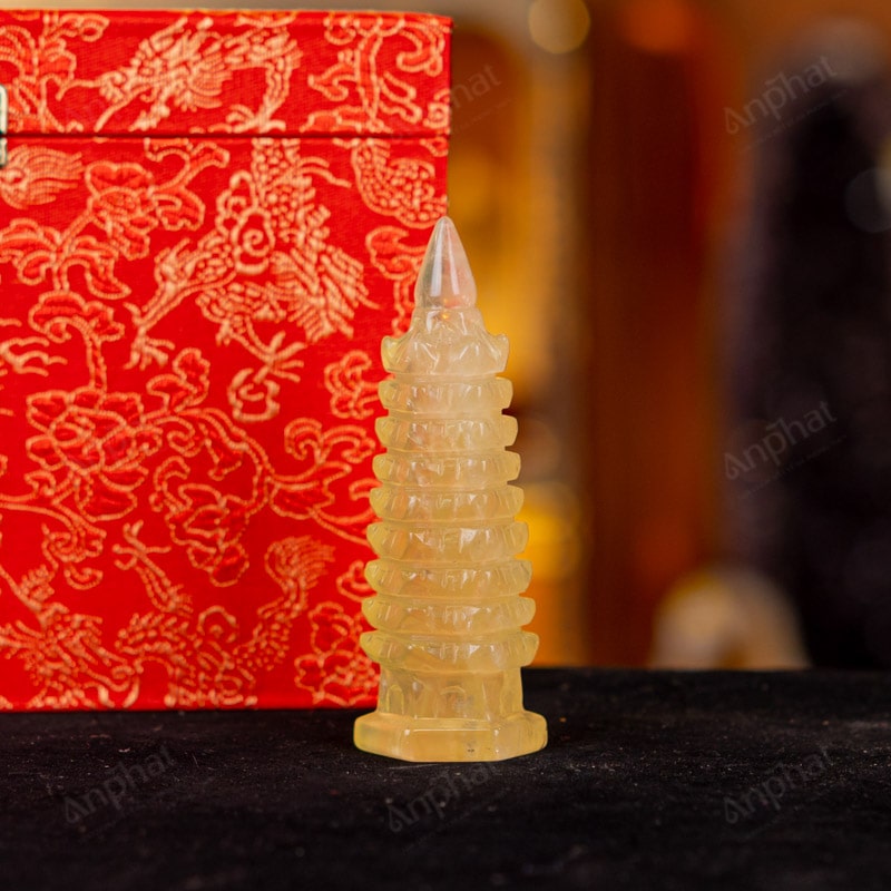 - Trọn bộ sản phẩm bao gồm: Tháp văn xương + hộp đựng sang trọng + túi giấy sang trọng + dầu dưỡng đá + thiệp + giấy kiểm định chất lượng đá