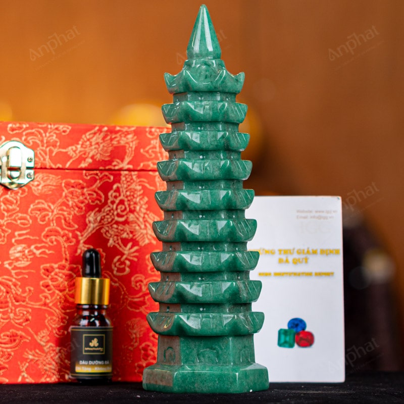- Trọn bộ sản phẩm bao gồm: Tháp văn xương + hộp đựng sang trọng + túi giấy sang trọng + dầu dưỡng đá + thiệp + giấy kiểm định chất lượng đá