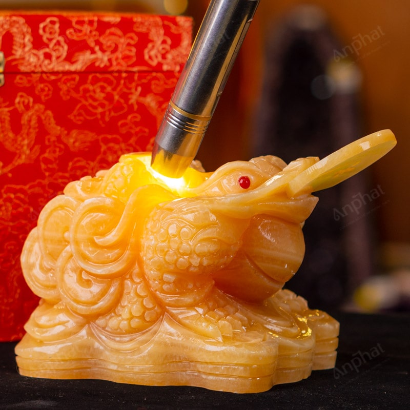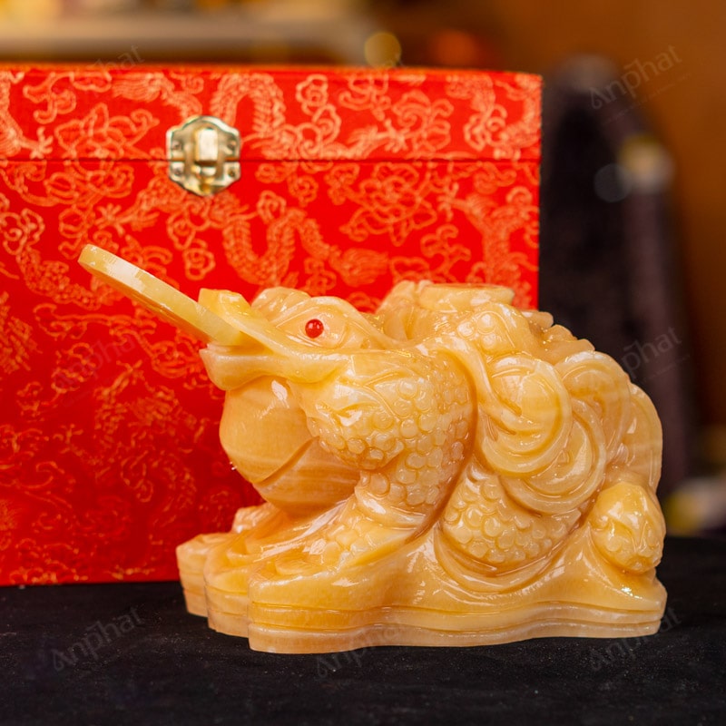 - Trọn bộ sản phẩm bao gồm: thiềm thừ + hộp đựng sang trọng + túi giấy sang trọng + dầu dưỡng đá + thiệp + giấy kiểm định chất lượng đá + khăn thơm bao sái + giấy hướng dẫn trực tiếp an vị + khai quang tại chùa Tứ Kỳ
