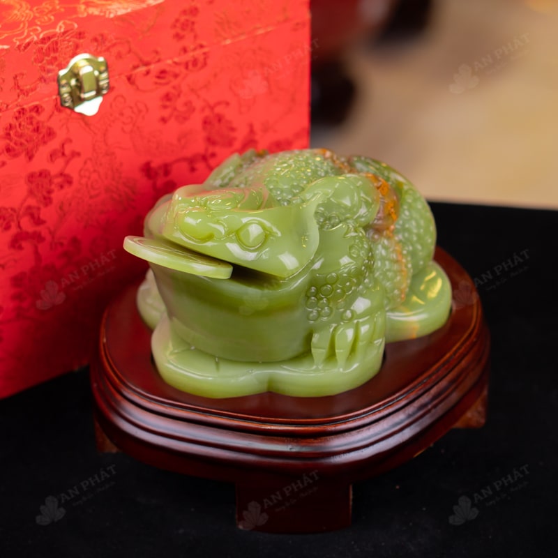 - Trọn bộ sản phẩm bao gồm: thiềm thừ + đế gỗ + hộp đựng sang trọng + túi giấy sang trọng + dầu dưỡng đá + thiệp + giấy kiểm định chất lượng đá + khăm thơm bao sái + giấy hưỡng dẫn trực tiếp an vị + khai quang tại chùa Tứ Kỳ