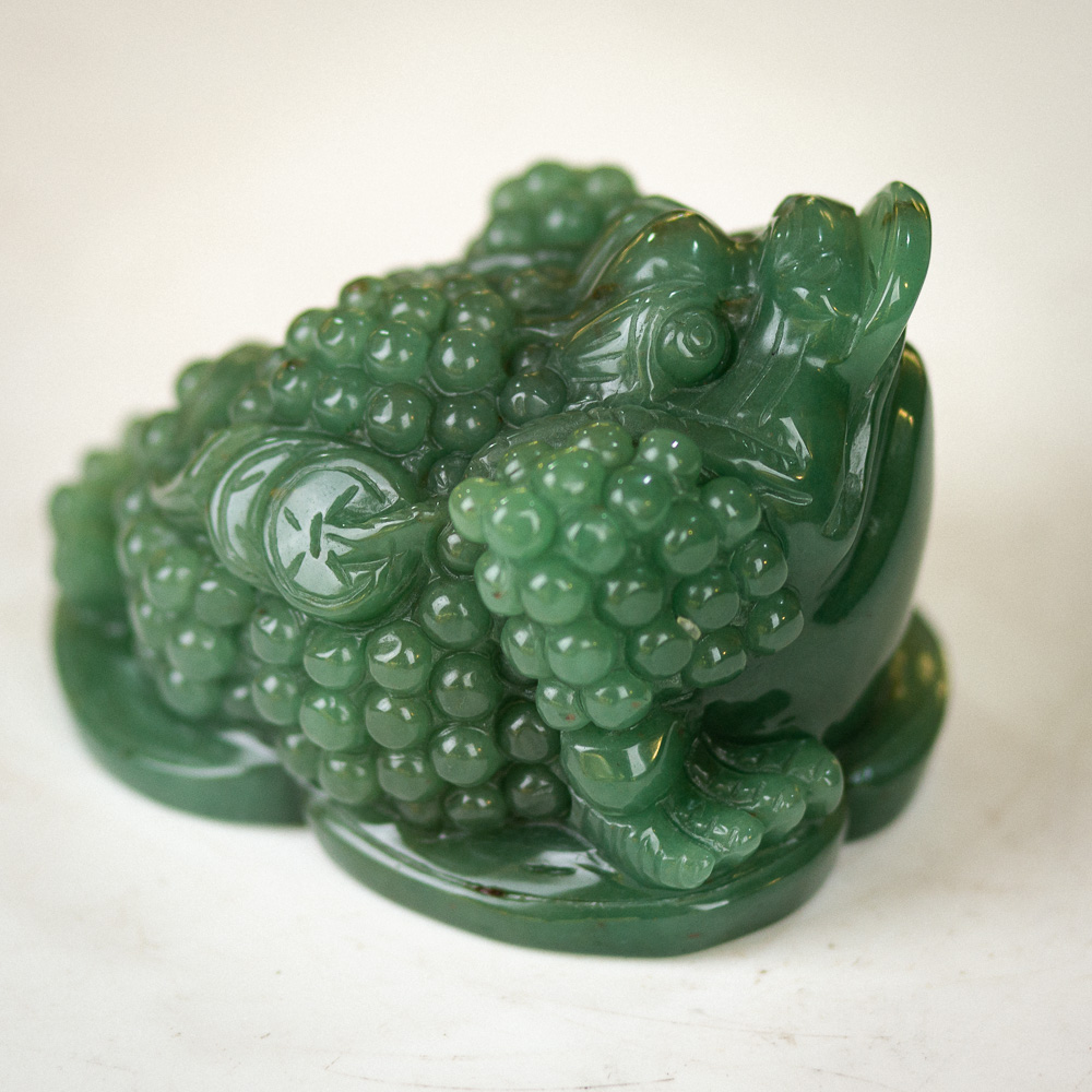 Thiềm thừ là một trong những con vật mang và giữ tiền trong nhà hiệu quả. Chính vì thế mà thiềm thừ khi làm bằng thạch anh xanh ngày càng tạo nên sức hút. Tại Đá Phong Thuỷ An Phát, chúng tôi luôn mang đến những vật phẩm có chất liệu tự nhiên. Ngoài ra, chúng còn được khắc hoạ theo chuẩn mẫu phong thuỷ do chính nghệ nhân hàng đầu trong lĩnh vực chế tác. Do đó, thiềm thừ thạch anh xanh tại đây mang màu sắc xanh của lá vô cùng tự nhiên. Cũng như chất liệu sở hữu độ thấu quang gần như là tuyệt đối.
