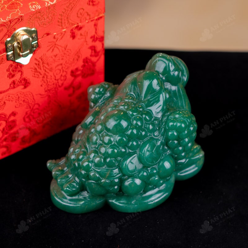 - Trọn bộ sản phẩm bao gồm: thiềm thừ + hộp đựng sang trọng + túi giấy sang trọng + dầu dưỡng đá + thiệp + giấy kiểm định chất lượng đá + khăn thơm bao sái + giấy hướng dẫn trực tiếp an vị + khai quang tại chùa Tứ Kỳ