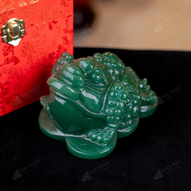- Trọn bộ sản phẩm bao gồm: thiềm thừ + hộp đựng sang trọng + túi giấy sang trọng + dầu dưỡng đá + thiệp + giấy kiểm định chất lượng đá + khăn thơm bao sái + giấy hướng dẫn trực tiếp an vị + khai quang tại chùa Tứ Kỳ