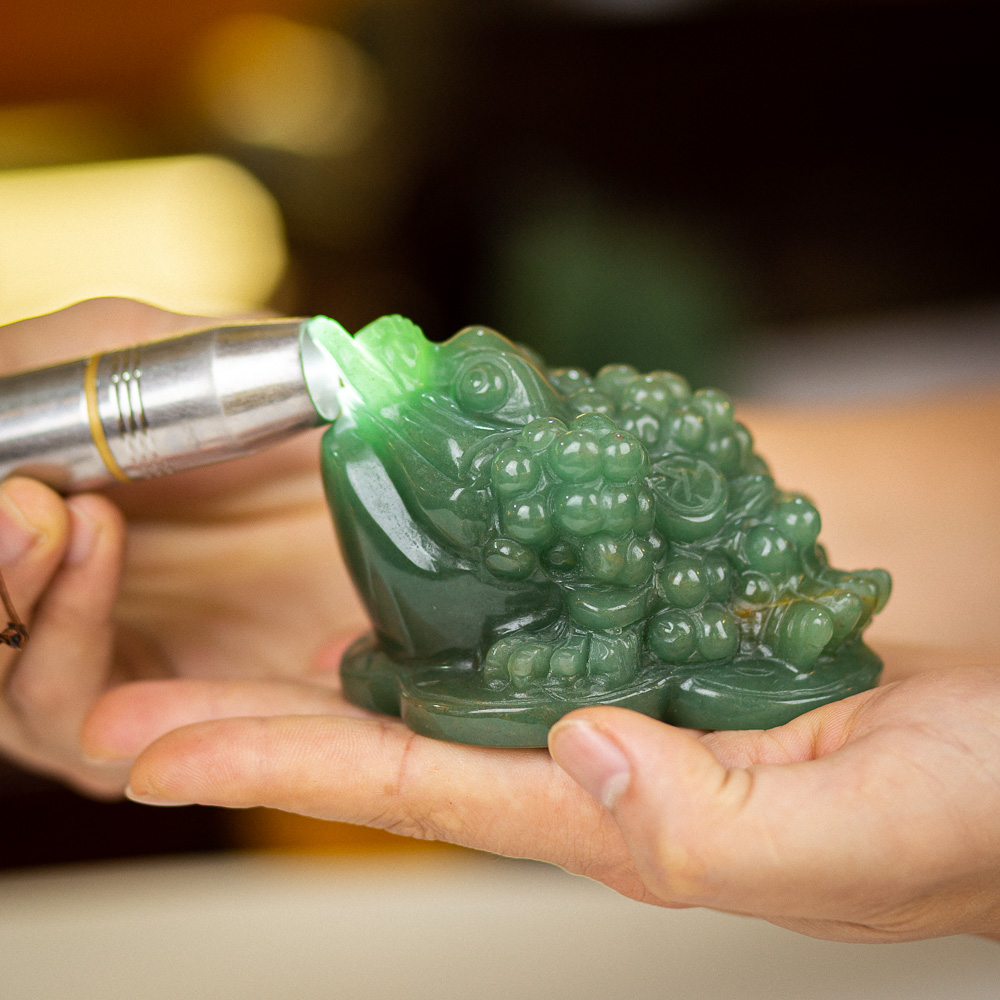 Thiềm thừ là một trong những con vật mang và giữ tiền trong nhà hiệu quả. Chính vì thế mà thiềm thừ khi làm bằng thạch anh xanh ngày càng tạo nên sức hút. Tại Đá Phong Thuỷ An Phát, chúng tôi luôn mang đến những vật phẩm có chất liệu tự nhiên. Ngoài ra, chúng còn được khắc hoạ theo chuẩn mẫu phong thuỷ do chính nghệ nhân hàng đầu trong lĩnh vực chế tác. Do đó, thiềm thừ thạch anh xanh tại đây mang màu sắc xanh của lá vô cùng tự nhiên. Cũng như chất liệu sở hữu độ thấu quang gần như là tuyệt đối.