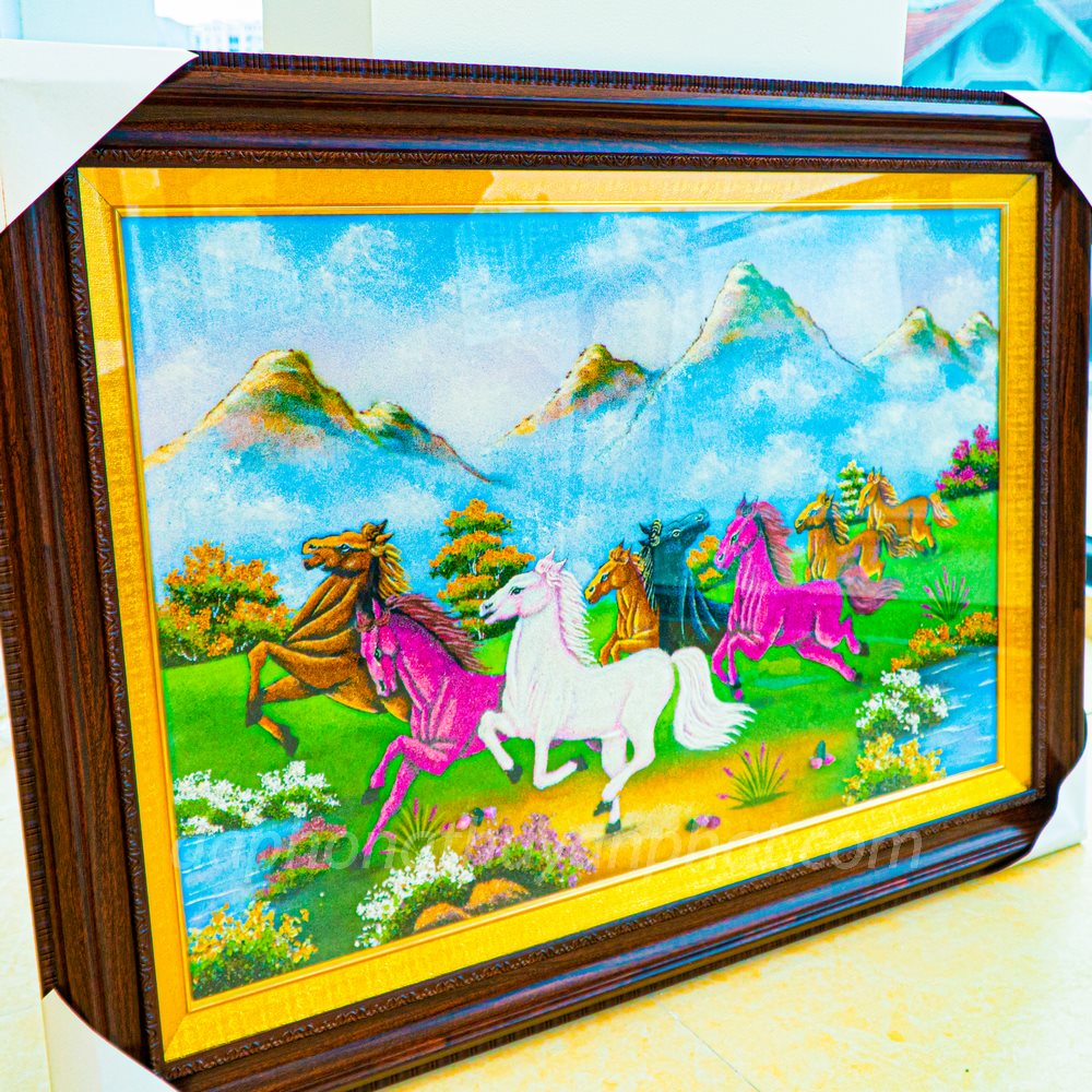 Bức tranh bát mã trên thảm cỏ xanh đem đến cảm giác tươi mới, phóng khoáng cho không gian, tràn ngập hơi thở thiên nhiên cho người xem. Tranh bát mã còn là biểu tượng cho sự cống hiến và sự hiển vinh trong sự nghiệp.