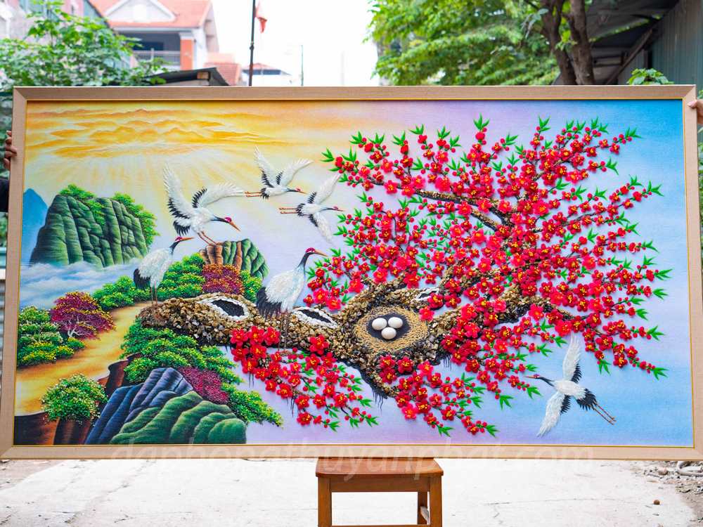 Tranh hạc đào còn đem đến nhiều ý nghĩa phong thủy lớn lao. Tượng trưng cho một cuộc sống đầm ấm và sum vầy giữa các thành viên trong gia đình. Đặc biệt bức tranh có tính thẩm mỹ vô cùng vượt trội. Treo tại không gian sống giúp tăng thêm tính thẩm mỹ cho không gian tạo nên một vẻ đẹp trọn vẹn chan hòa.