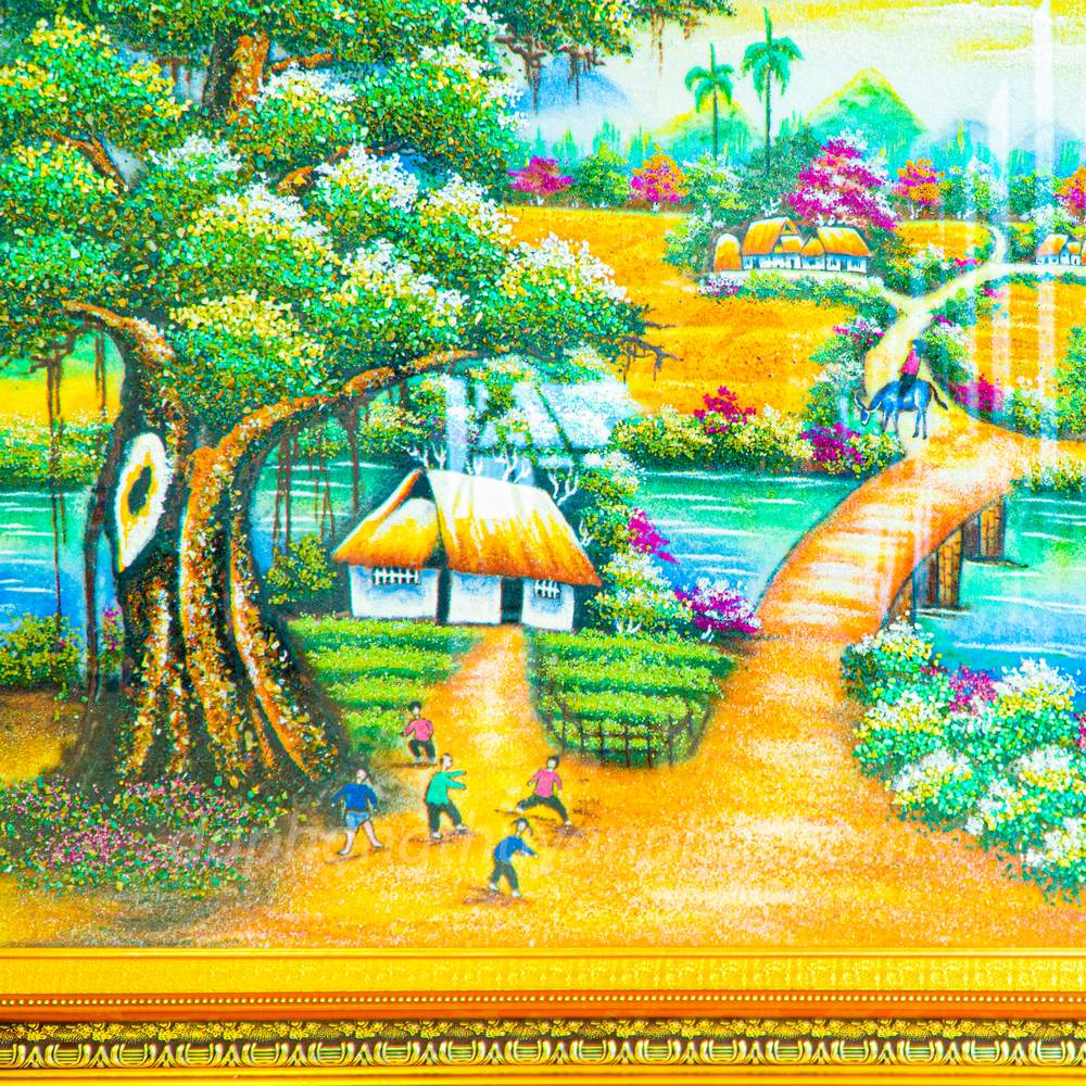 Đây là bức tranh phong cảnh đẹp, gắn liền với tuổi thơ của nhiều người dân Việt Nam. Hình ảnh làng quê đơn sơ mộc mạc nhưng lại đậm nét trữ tình thường được nhiều gia đình lựa chọn treo trong phòng khách.