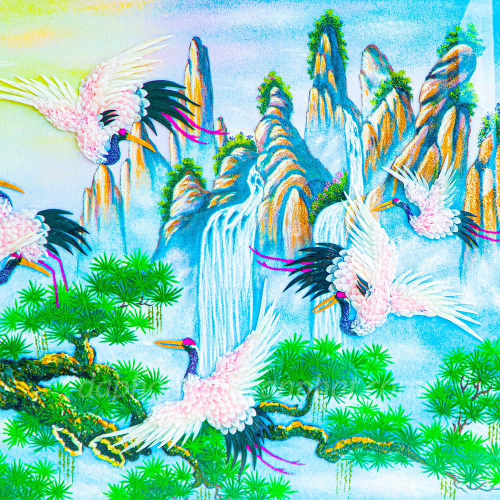 Đồng thời tranh tùng hạc đón khách còn có tính thẩm mỹ vô cùng cao. Bức tranh khiến cho những ai đã từng ngắm qua cũng phải mê đắm ngay từ lần nhìn đầu tiên. Làm bừng sáng, điểm nhấn nổi bật cho không gian của gia đình bạn.