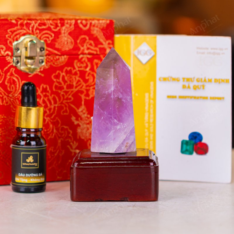 - Trọn bộ sản phẩm bao gồm: trụ đá + đế gỗ + hộp đựng sang trọng + túi giấy sang trọng + dầu dưỡng đá + thiệp + giấy kiểm định chất lượng đá