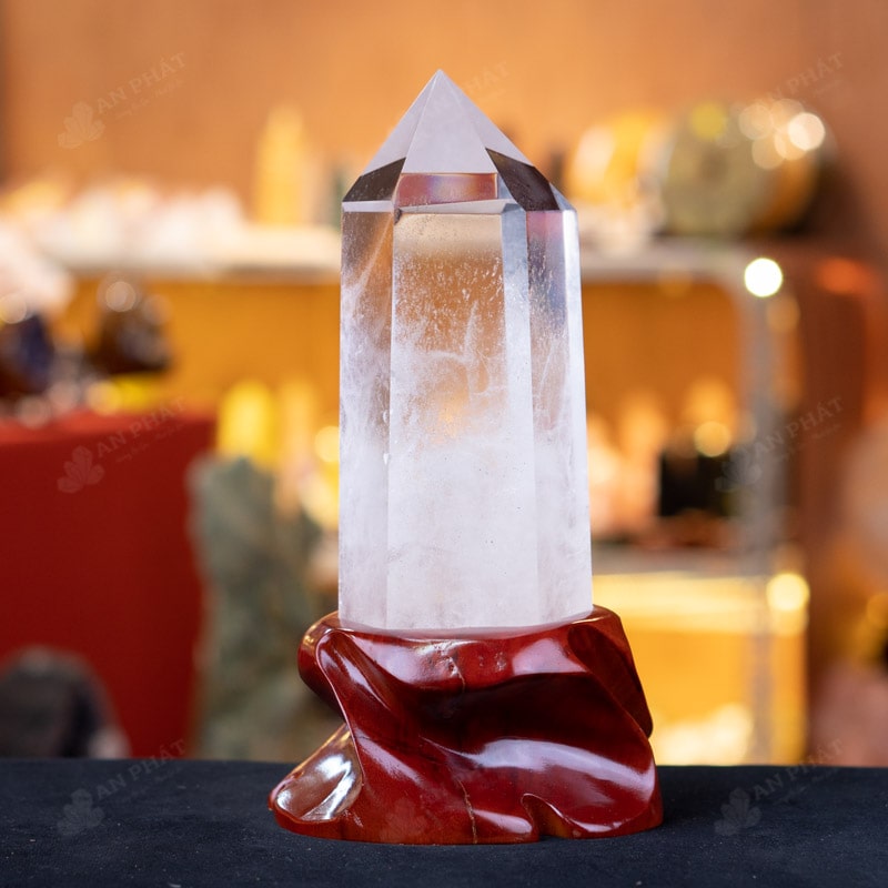 - Trọn bộ sản phẩm bao gồm: trụ thạch anh + đế gỗ + dầu dưỡng đá + thiệp + giấy kiểm định chất lượng đá