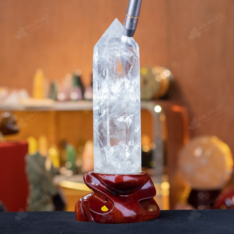 - Trọn bộ sản phẩm bao gồm: trụ thạch anh + đế gỗ + dầu dưỡng đá + thiệp + giấy kiểm định chất lượng đá