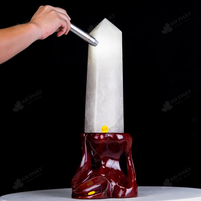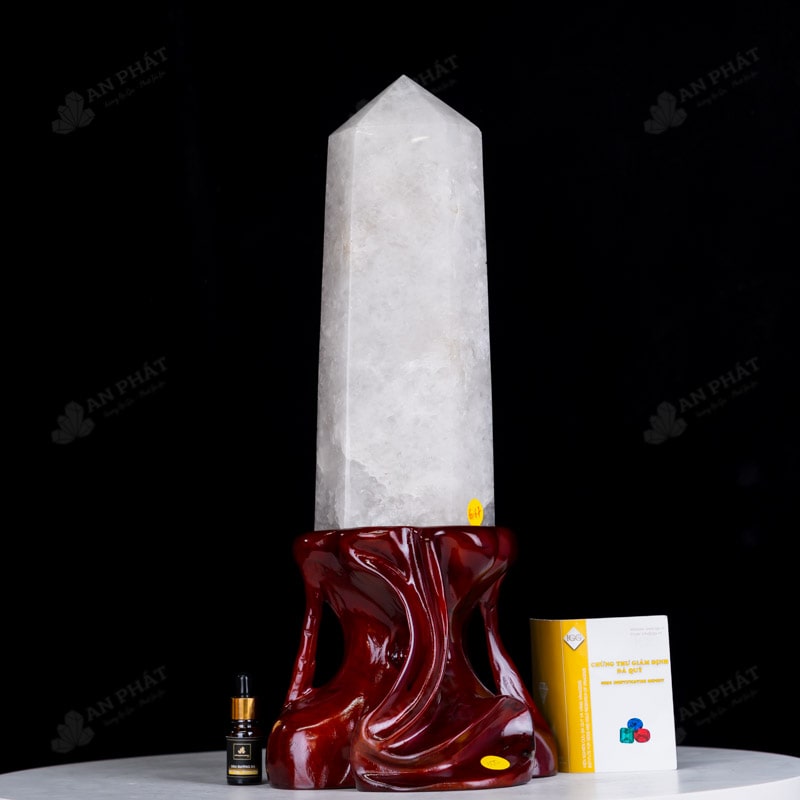 - Trọn bộ sản phẩm bao gồm: trụ thạch anh + đế gỗ + dầu dưỡng đá + thiệp + giấy kiểm định chất lượng đá