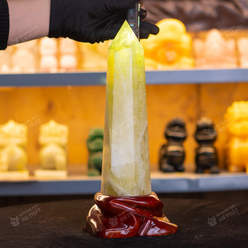 Trụ đá thạch anh vàng hay còn được gọi là trụ đá kinh doanh,thường được đặt trên bàn làm việc, quầy thu ngân, hỗ trợ cho việc buôn bán được thuận buồm xuôi gió. Đặc biệt trụ đá thạch anh vàng còn giúp giảm căng thẳng và mệt mỏi, tiếp thêm cho chủ nhân một nguồn sức mạnh.