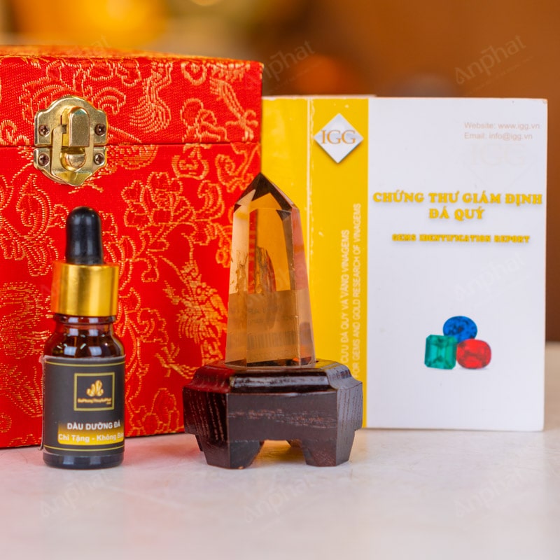 - Trọn bộ sản phẩm bao gồm: trụ đá + đế gỗ + hộp đựng sang trọng + túi giấy sang trọng + dầu dưỡng đá + thiệp + giấy kiểm định chất lượng đá