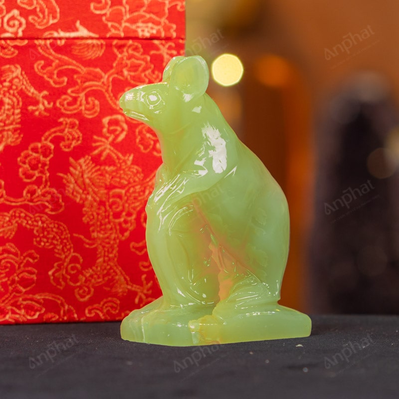 Tượng Chuột Đá Onyx Xanh - 12cm - M2901045