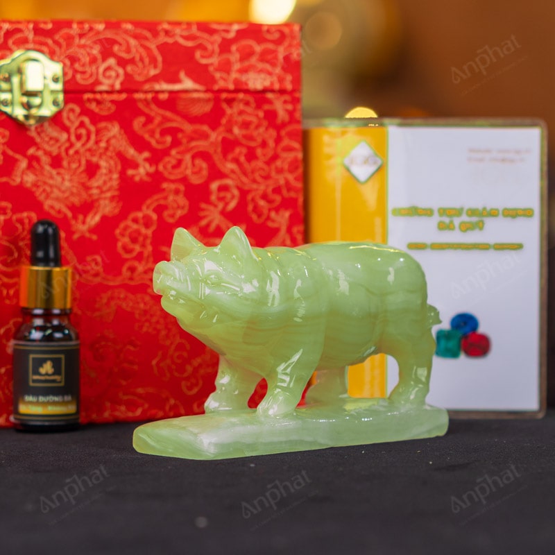 - Trọn bộ sản phẩm bao gồm: Tượng đá + hộp đựng sang trọng + túi giấy sang trọng + dầu dưỡng đá + thiệp + giấy kiểm định chất lượng đá
