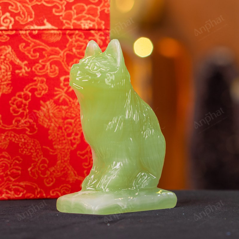 Tượng Mèo Đá Onyx Xanh - 12cm - M29010516