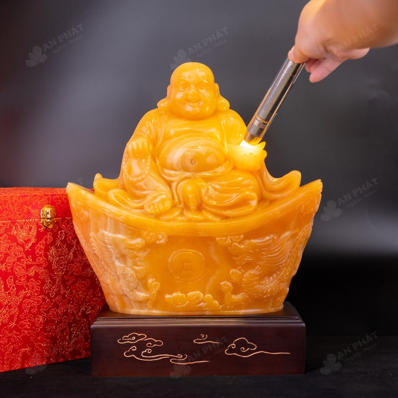 - Trọn bộ sản phẩm bao gồm: tượng phật di lặc + đế gỗ + dầu dưỡng đá + thiệp + giấy kiểm định chất lượng đá