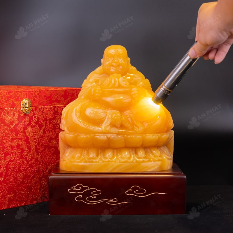 - Trọn bộ sản phẩm bao gồm: tượng phật di lặc + đế gỗ + hộp đựng sang trọng + túi giấy sang trọng + dầu dưỡng đá + thiệp + giấy kiểm định chất lượng đá