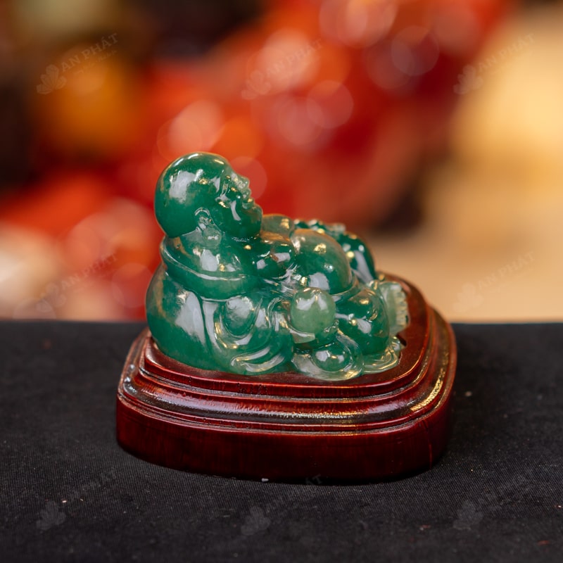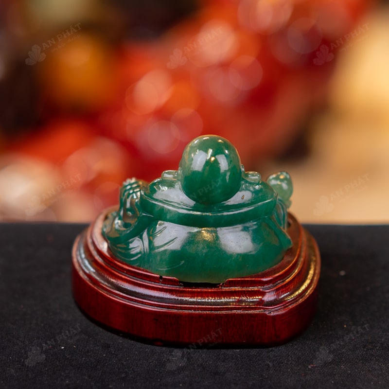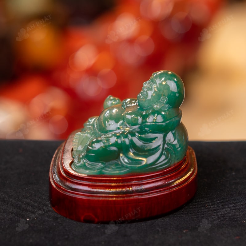 Ảnh cận cảnh tượng Phật Di Lặc thạch anh xanh