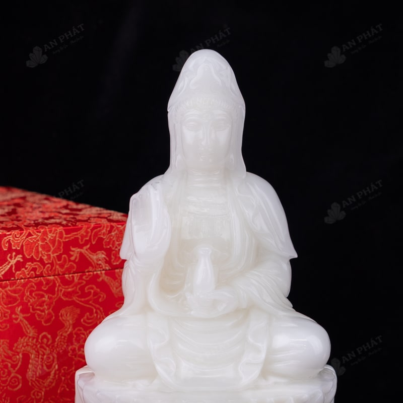 - Trọn bộ sản phẩm bao gồm:Tượng Quan Âm Bồ Tát + đế gỗ + dầu dưỡng đá + thiệp + giấy kiểm định chất lượng đá