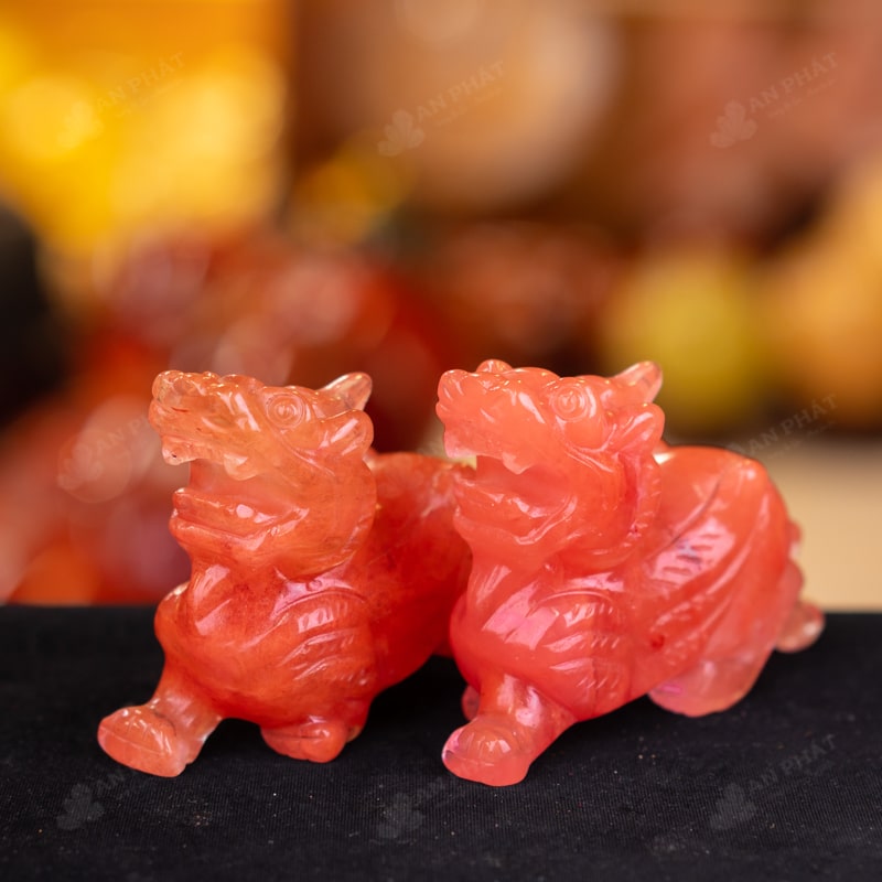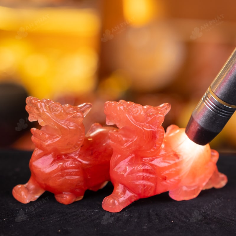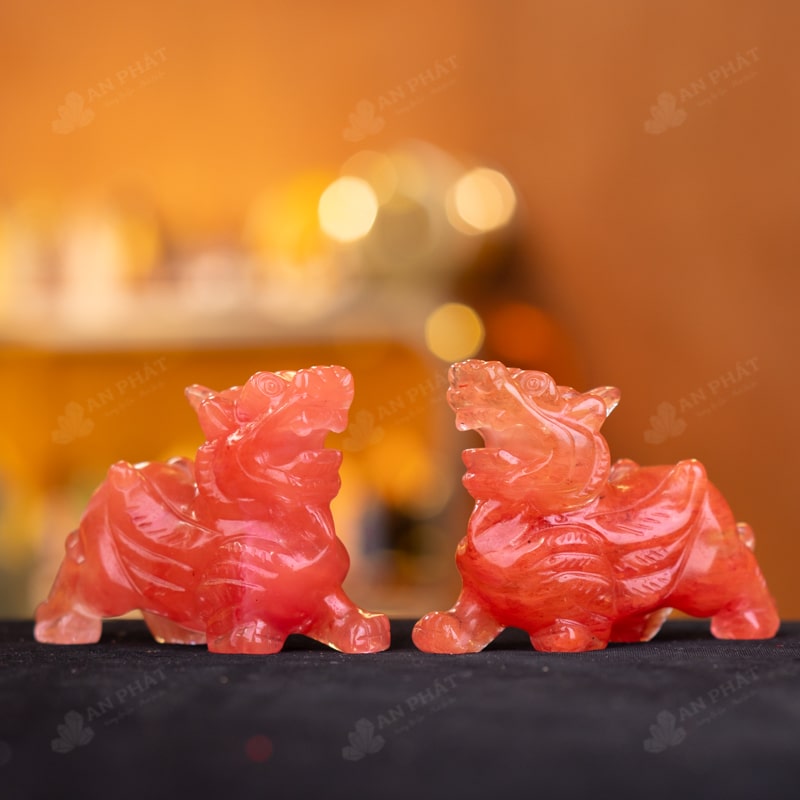 Ảnh cận cảnh cặp Tỳ Hưu đá núi lửa đỏ