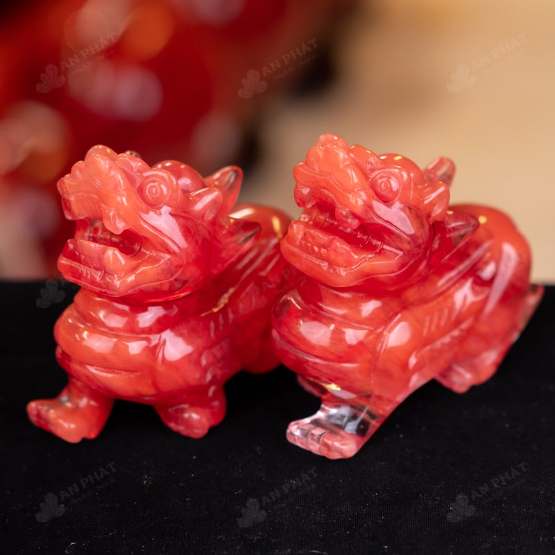 Ảnh cận cảnh cặp Tỳ Hưu đá núi lửa đỏ