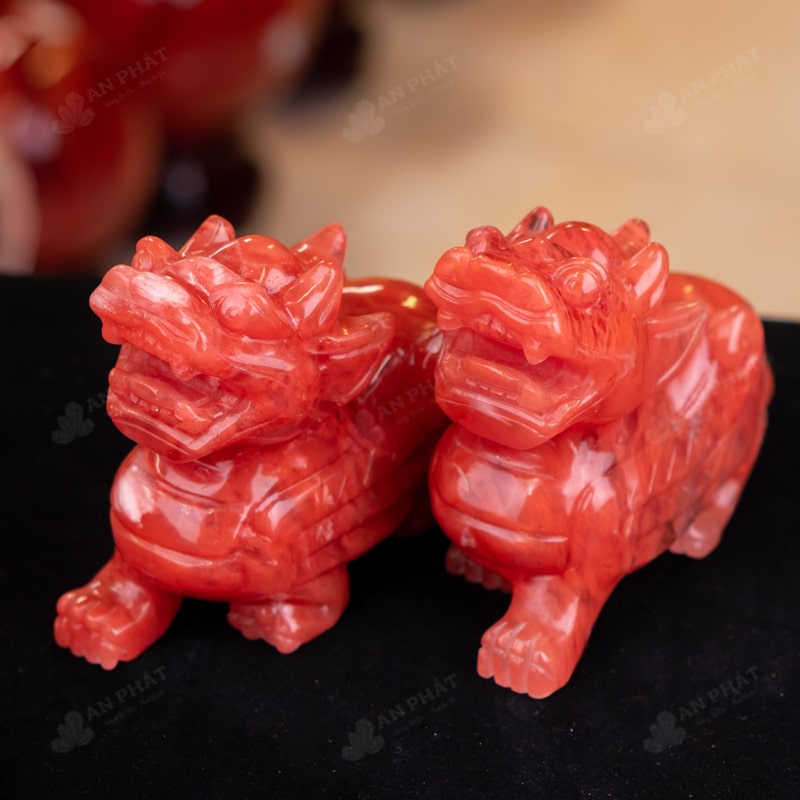Ảnh cận cảnh cặp tỳ hưu đá núi lửa đỏ