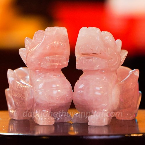 Thạch anh hồng là loại đá thạch anh có màu hồng và được biết đến với tên gọi Hyaline Quartz. Loại đá này có độ trong suốt mờ, bóng như thuỷ tinh thể. Thông thường, người sử dụng đá thạch anh hồng sẽ biết cách yêu thương bản thân. Đồng thời có thể tự chữa lành mọi vết thương lòng, mang lại bình yên cho chính mình. Thạch anh hồng phù hợp với cung mệnh Thổ, Hoà và được chế tác thành nhiều sản phẩm phong thuỷ. Trong đó, tỳ hưu là một linh vật phổ biến khi cũng được các nghệ nhân mài dũa bằng đá thạch anh hồng.